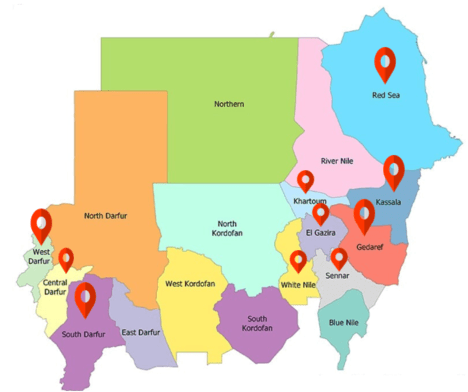 - Central Darfur State:Zalingei, Mukjar, Golo, West Jabal Mara, Umdokhon